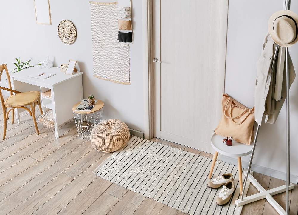 Zeminlerde açık renk parke veya taş desenli döşemeler kullanmak, küçük odalarda genişlik hissi yaratır. Halı seçimi ise mekânın atmosferini tamamlar. Küçük desenli, açık tonlu halılar odayı daha ferah gösterir. Duvarla aynı tonlarda zemin renkleri tercih etmek, gözün kesintisiz bir alan algılamasını sağlar.